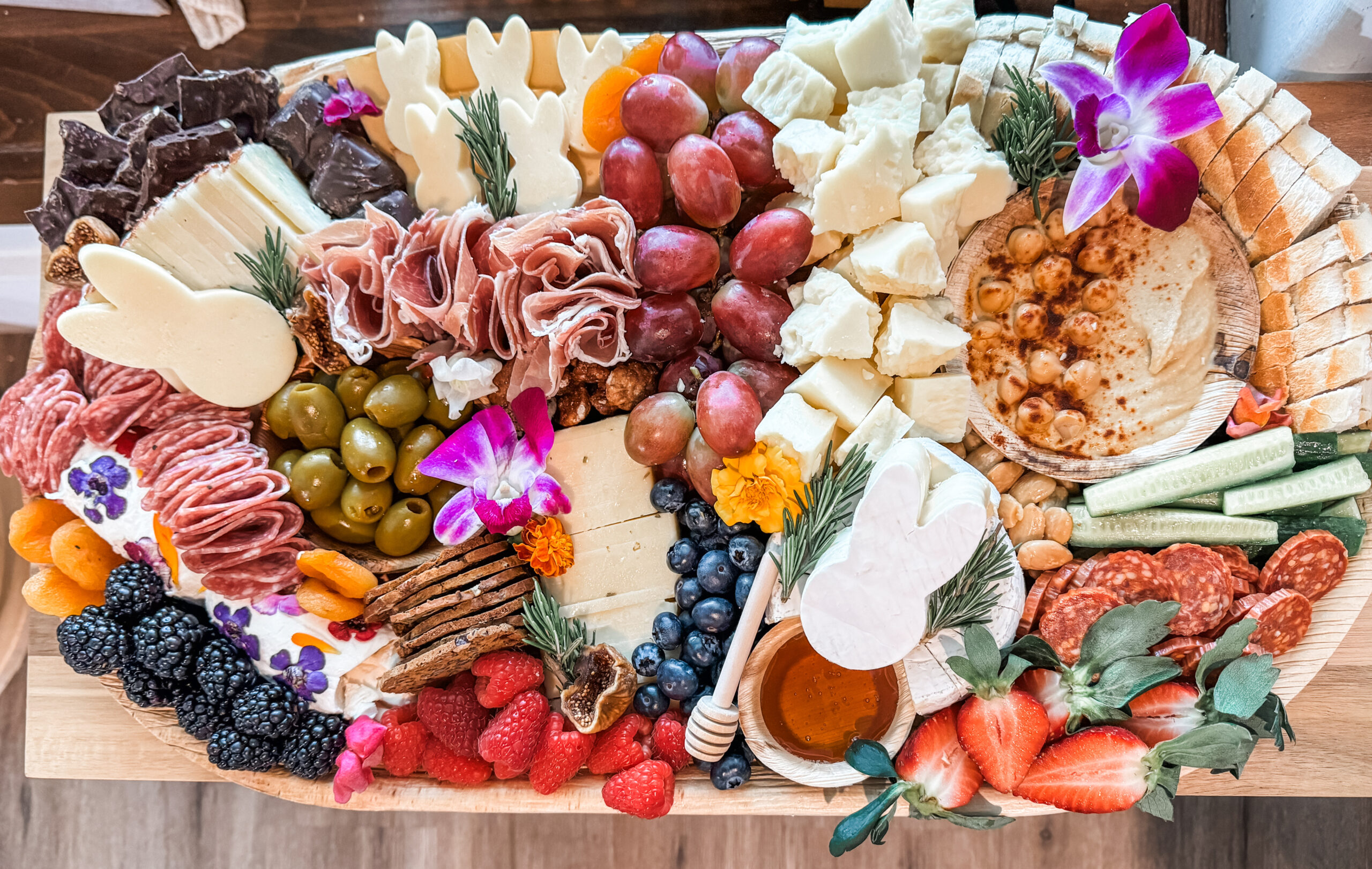 Hop into the Easter spirit with our adorable Easter-themed charcuterie board! This festive board is filled with a delightful assortment of cheeses, meats, fruits, and sweets, guaranteed to make your taste buds hop with joy. From bunny-shaped cheeses to colorful Easter egg chocolates, every detail is crafted with love and care. Whether you’re celebrating with family or hosting a cozy gathering with friends, our Easter charcuterie board is sure to be the star of the show. It’s the perfect way to nibble while enjoying the holiday festivities. Don’t miss out on this egg-cellent addition to your Easter celebration!