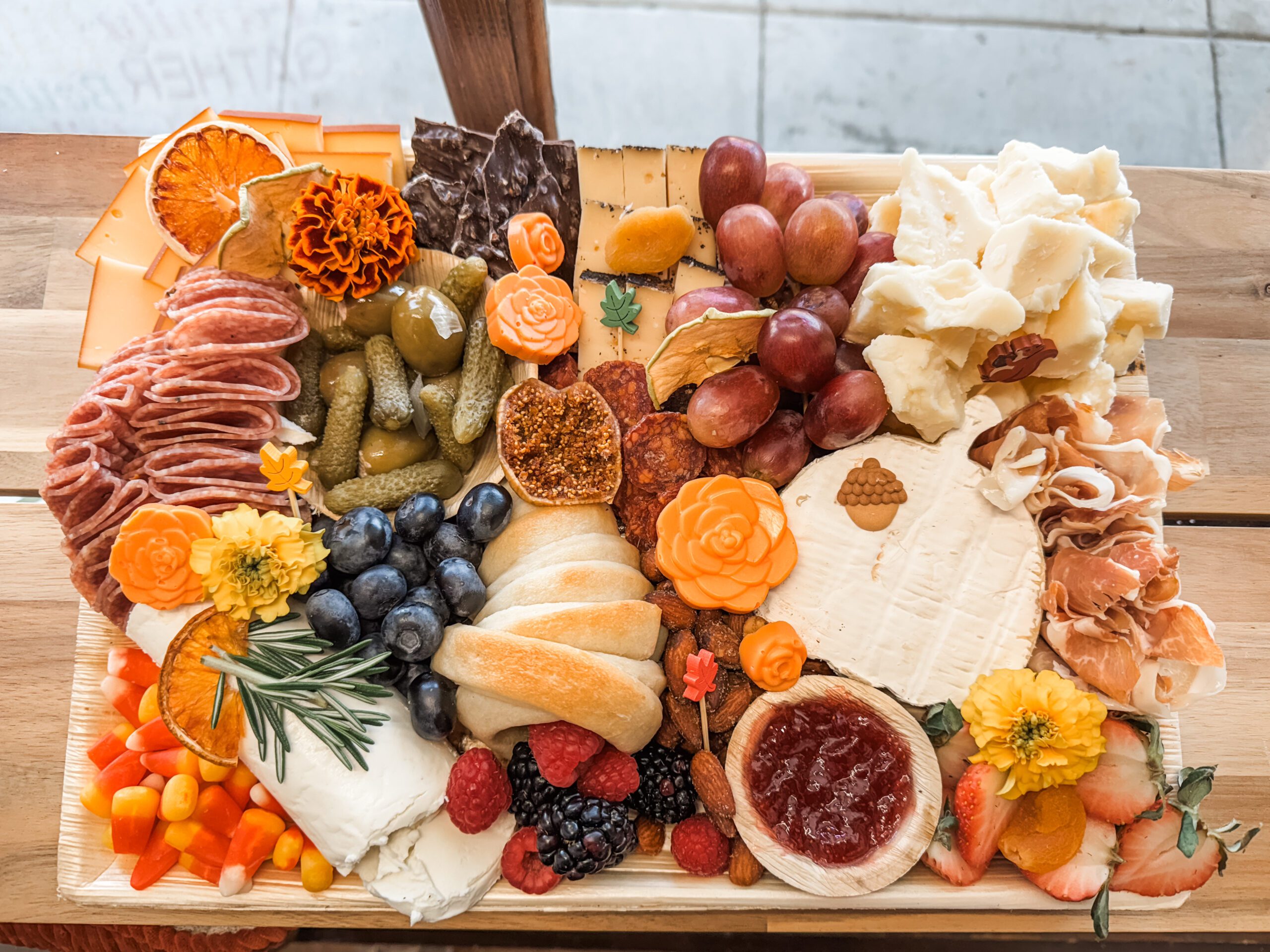 Celebrate the flavors of the season with our beautiful Harvest Spread — a cozy, autumn-inspired take on our signature graze boards. Each one is filled with a delicious mix of cheeses, meats, fruits, and festive touches like a fun cornucopia, garnishes, and edible florals.